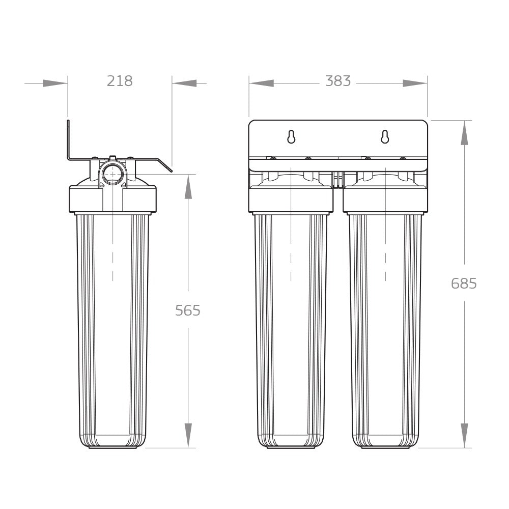 Puretec Dual Filter Housing 10"J incl filters EM2-140